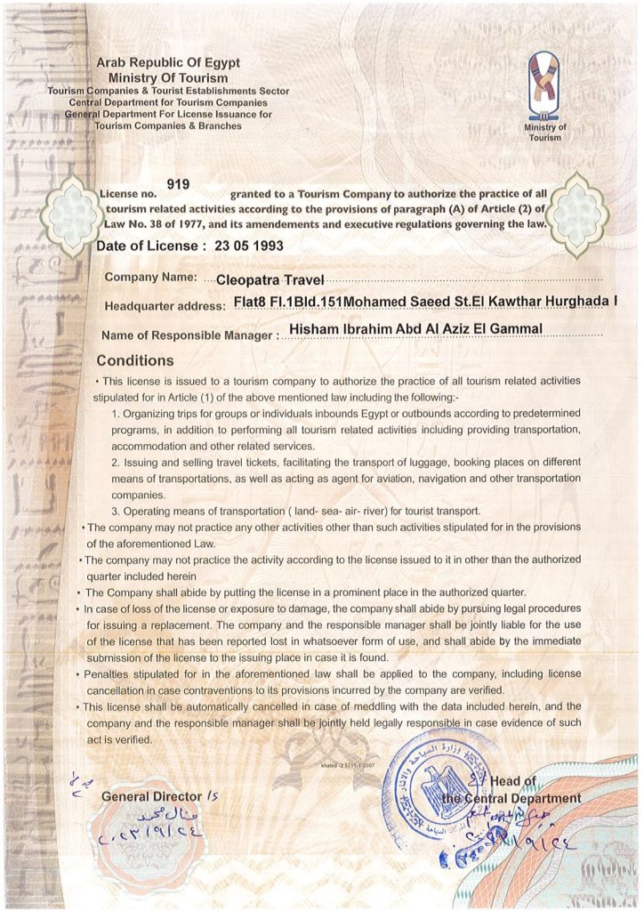 - Established Parent Company: Nile Cruisers operates under Cleopatra Travel, an accredited travel brand with more than twenty years of industry experience and a license from the Egyptian Ministry of Tourism & Antiquities (license number 919).